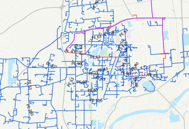 △境外地理信息系統(tǒng)軟件繪制的城市管網(wǎng)圖