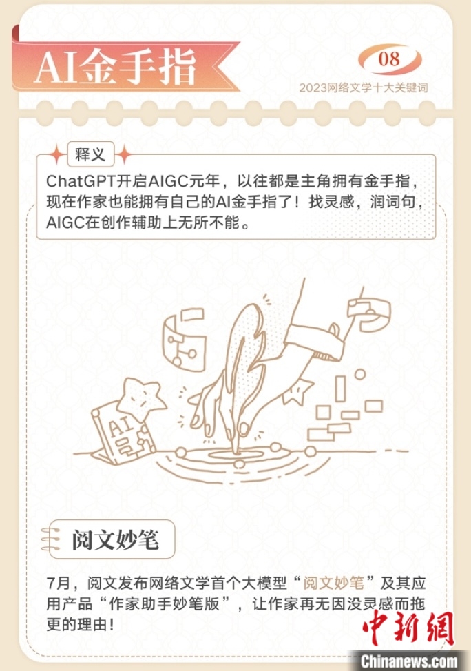 2023網(wǎng)絡(luò)文學(xué)十大關(guān)鍵詞——AI金手指。閱文集團 供圖