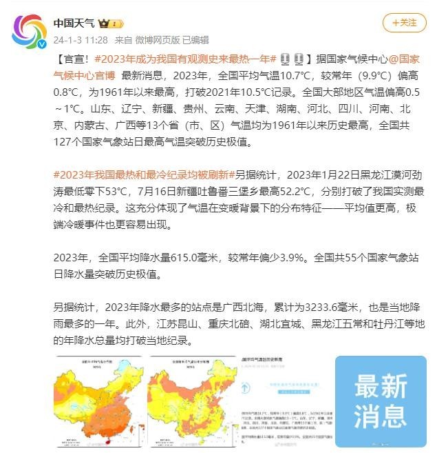 2023年我國最熱和最冷紀錄均被刷新