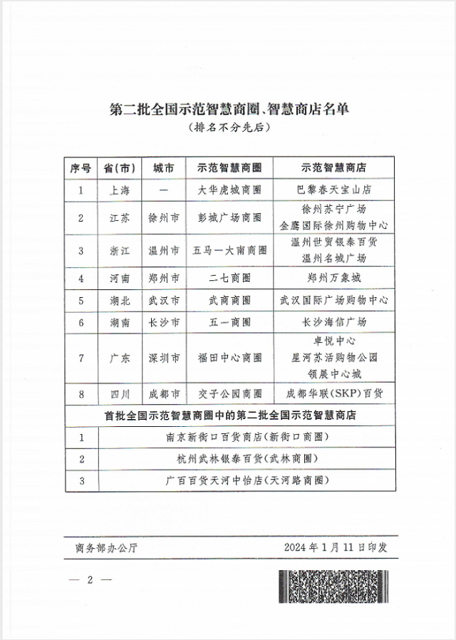 商務(wù)部公布第二批全國(guó)示范智慧商圈、智慧商店名單