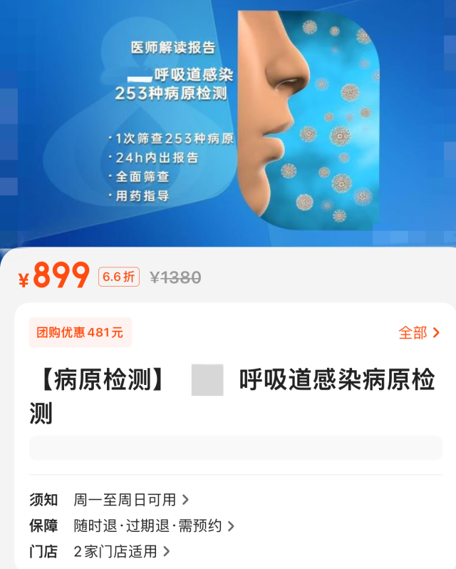 事實(shí)上,這并非種類(lèi)最多的檢測(cè)方案。記者在調(diào)查中發(fā)現(xiàn),有機(jī)構(gòu)推出的呼吸道感染病原檢測(cè)一次篩查病原多達(dá)253種,原價(jià)1380元,折后也要899元。