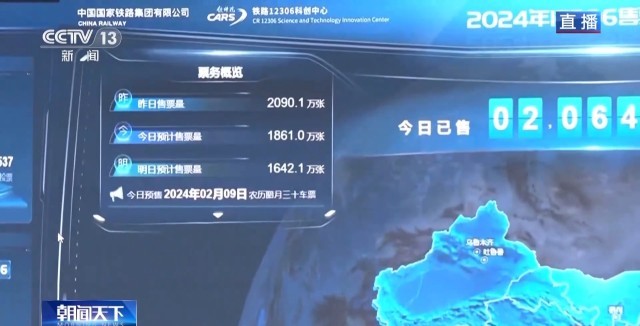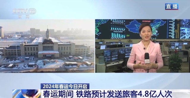 總臺(tái)央視記者 陳晰:40天春運(yùn),全國(guó)鐵路預(yù)計(jì)發(fā)送旅客4.8億人次,日均1200萬人次。今天是春運(yùn)首日,全國(guó)鐵路預(yù)計(jì)發(fā)送旅客1060萬人次。2024年春運(yùn)的火車票預(yù)售已經(jīng)從1月12日開始發(fā)售,從目前的售票情況來看,旅客出行需求旺盛。