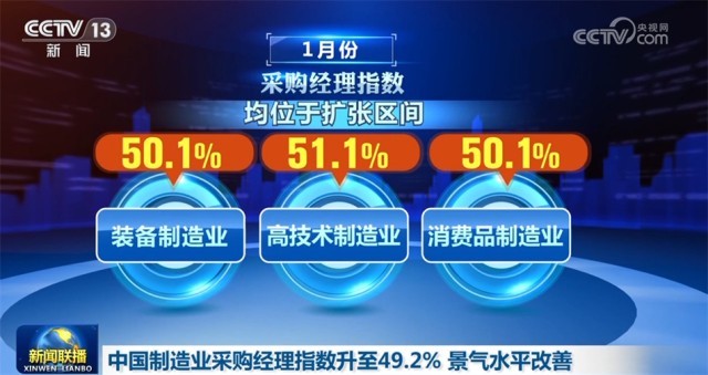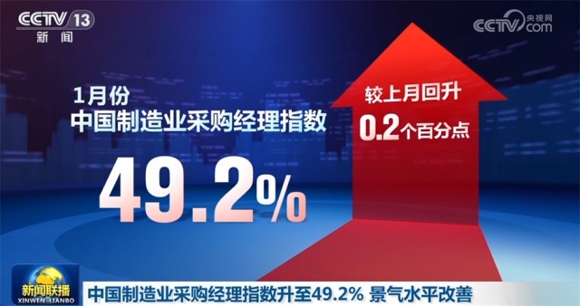 中國物流與采購聯(lián)合會、國家統(tǒng)計局服務(wù)業(yè)調(diào)查中心1月31日公布,1月份中國制造業(yè)采購經(jīng)理指數(shù)為49.2%,較上月回升0.2個百分點,結(jié)束了連續(xù)3個月下降勢頭,景氣水平有所改善。