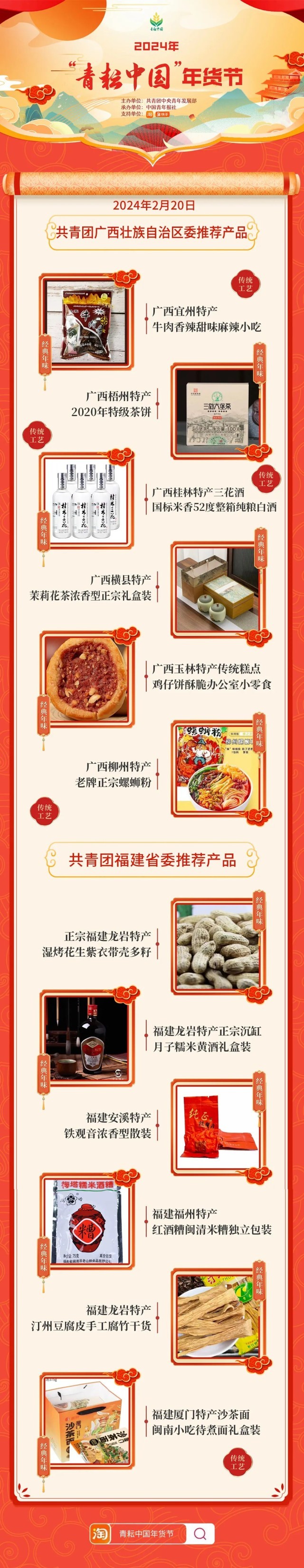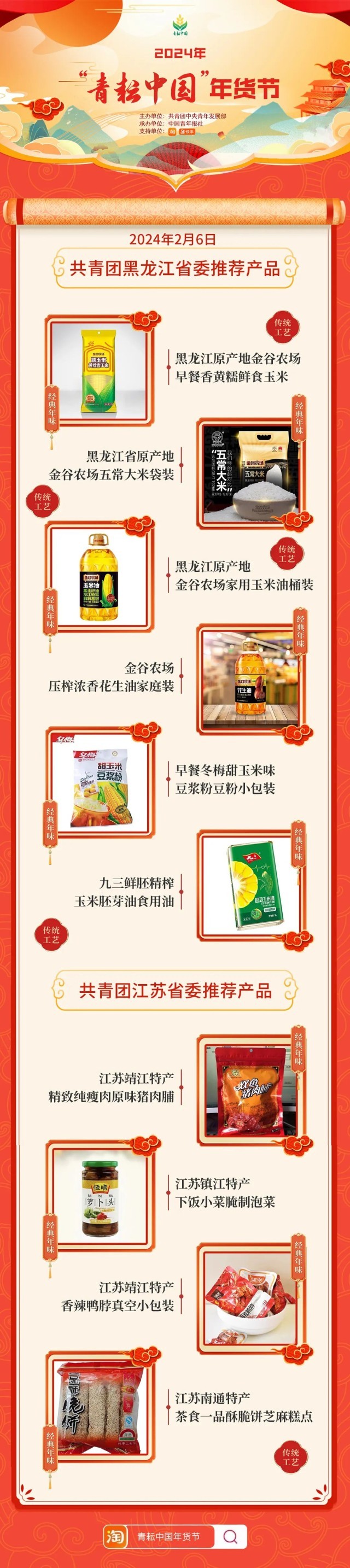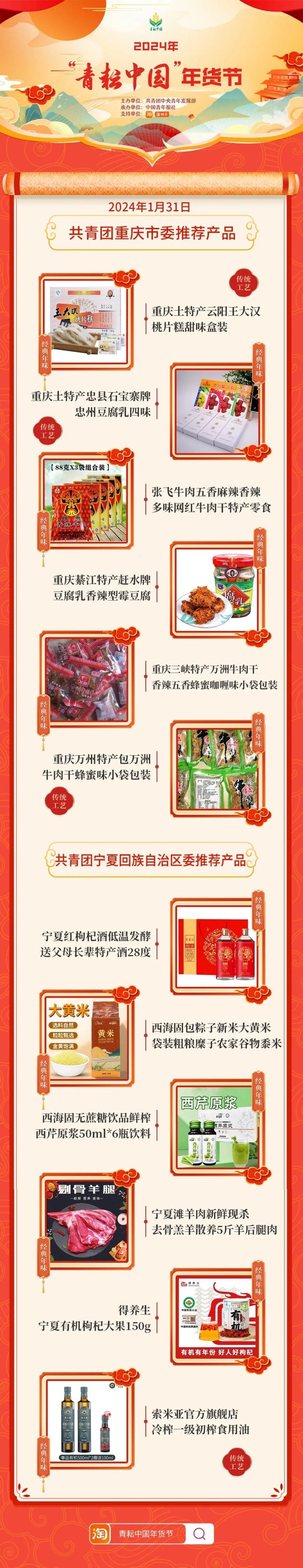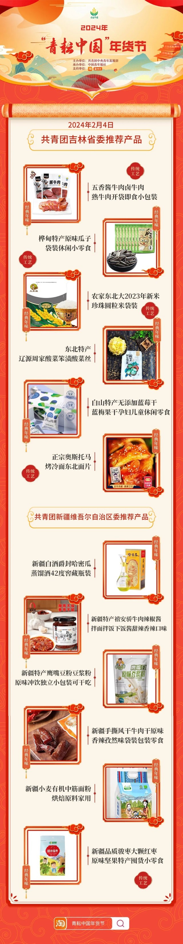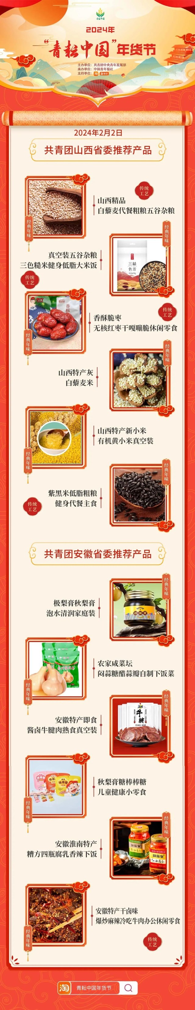 2024年“青耘中國(guó)”年貨節(jié)將于1月31日至2月24日,開展“一日兩省”主題日活動(dòng)。用戶可在淘寶APP搜索“青耘中國(guó)年貨節(jié)”進(jìn)入專題頁(yè)選購(gòu)產(chǎn)品。