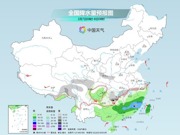 南方大范圍雨雪持續(xù) 除夕起中東部大部天氣晴好