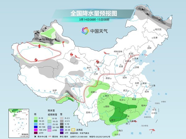 降水方面,昨天,南方陰雨天氣再度發(fā)展增多,同時新疆、西藏等地出現(xiàn)降雪,監(jiān)測顯示,新疆北部、青海東南部等地部分地區(qū)出現(xiàn)小到中雪或雨夾雪,新疆伊犁、博州等地局地降水量6~7毫米;廣西東北部和南部、廣東北部、湖南西南部等地部分地區(qū)出現(xiàn)中到大雨。