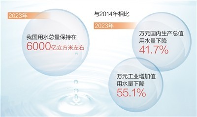 本報(bào)北京3月24日電 (記者王浩)記者近日從水利部獲悉:水利部門全面貫徹落實(shí)“節(jié)水優(yōu)先、空間均衡、系統(tǒng)治理、兩手發(fā)力”治水思路,推動(dòng)用水方式向節(jié)約集約轉(zhuǎn)變。初步統(tǒng)計(jì)顯示,2023年我國(guó)用水總量保持在6000億立方米左右。這意味著,2014年以來,我國(guó)國(guó)內(nèi)生產(chǎn)總值增長(zhǎng)近一倍的情況下,用水總量總體穩(wěn)定在6100億立方米以內(nèi);與2014年相比,2023年萬元國(guó)內(nèi)生產(chǎn)總值用水量、萬元工業(yè)增加值用水量分別下降41.7%、55.1%。全國(guó)用水“賬單”里的變與不變,反映了用水效率和效益持續(xù)提升,印證了發(fā)展質(zhì)量和效益不斷提高。