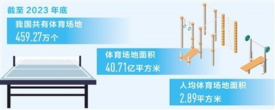 本報(bào)北京3月23日電 (記者李洋、季芳、劉碩陽(yáng))國(guó)家體育總局日前發(fā)布數(shù)據(jù)顯示:截至2023年底,我國(guó)共有體育場(chǎng)地459.27萬(wàn)個(gè),體育場(chǎng)地面積40.71億平方米,人均體育場(chǎng)地面積2.89平方米,提前實(shí)現(xiàn)了《“十四五”體育發(fā)展規(guī)劃》中提出的2.6平方米的人均體育場(chǎng)地面積目標(biāo)。