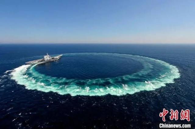 山東艦進行大舵角試驗。李剛 攝