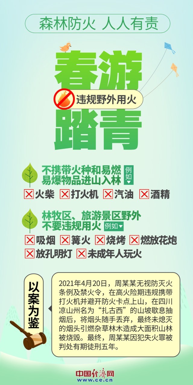 中國經(jīng)濟網(wǎng)北京4月3日訊(記者 楊秀峰 李冬陽 景遠)近期,春耕生產(chǎn)、踏青旅游、民俗祭祀等活動逐漸增多,一些地區(qū)接連發(fā)生森林火災(zāi);一些地區(qū)火險等級居高不下,全國各地陸續(xù)進入春季防火緊要期,防滅火形勢嚴峻復雜。