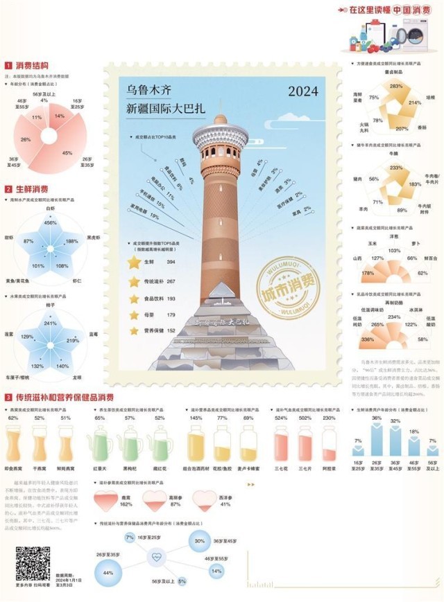 觀察、梳理和分析當(dāng)?shù)叵M(fèi)數(shù)據(jù),可以看出,烏魯木齊消費(fèi)市場持續(xù)升溫,特別是春節(jié)期間,消費(fèi)潛能得到充分釋放,呈現(xiàn)飲食消費(fèi)升級(jí)等新趨勢。
