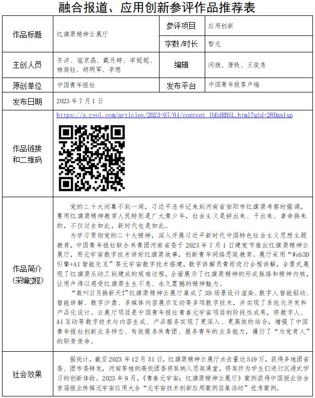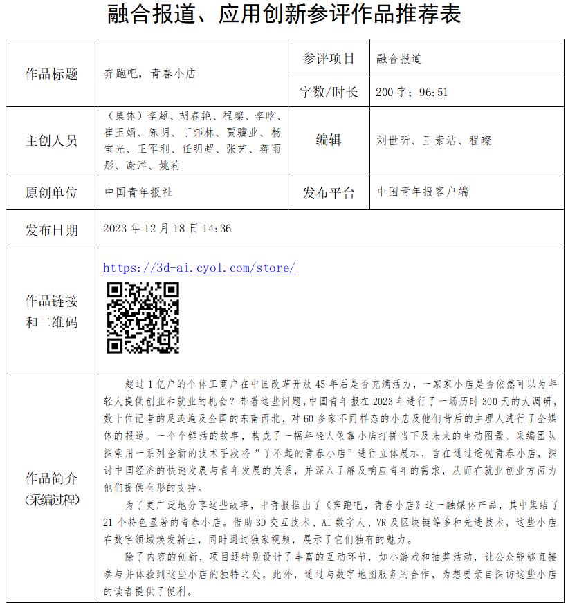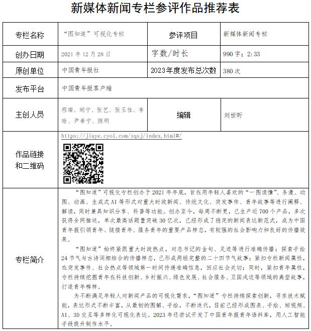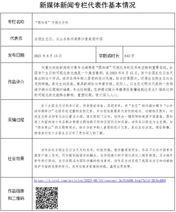 中國青年報社推薦參評第34屆中國新聞獎融合報道、應(yīng)用創(chuàng)新和新媒體新聞專欄作品專項初評公示
