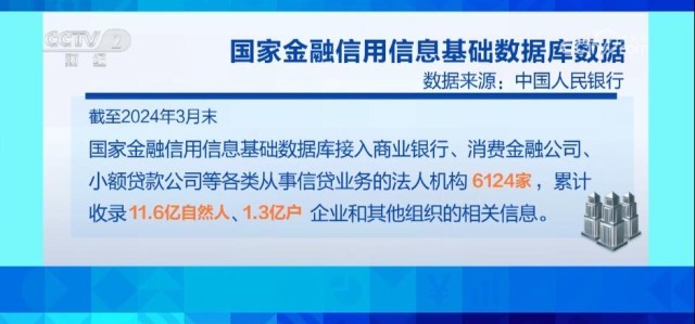 截至2024年3月末,國(guó)家金融信用信息基礎(chǔ)數(shù)據(jù)庫(kù)接入商業(yè)銀行、消費(fèi)金融公司、小額貸款公司等各類從事信貸業(yè)務(wù)的法人機(jī)構(gòu)6124家,累計(jì)收錄11.6億自然人、1.3億戶企業(yè)和其他組織的相關(guān)信息。