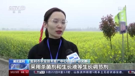 監(jiān)利市農(nóng)業(yè)技術(shù)推廣中心技術(shù)員 徐文靜:采用殺菌劑和生長液等生長調(diào)節(jié)劑,以達到促進油菜正常生長,防菌核病、防早衰、防花不實和防高溫逼熟的一個效果,以保證油菜的豐產(chǎn)。