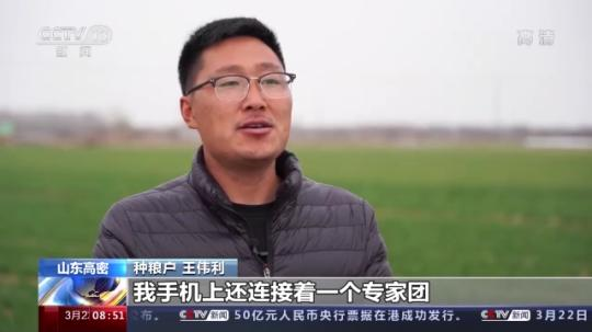 山東高密市種糧戶 王偉利:現(xiàn)在不是我一個人在種地,我手機上還連接著一個專家團。根據(jù)他們的指導(dǎo),在冷空氣來臨之前,我早就給小麥澆上了水,土地沒有裂縫,冷空氣就進不去。