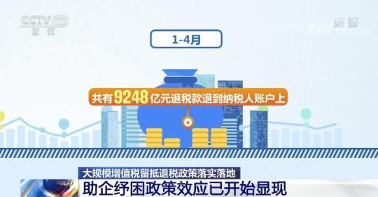 據(jù)統(tǒng)計,今年4月1日至30日,全國已有8015億元增值稅留抵退稅款退到145.2萬戶納稅人賬戶上,再加上一季度繼續(xù)實施的此前出臺的留抵退稅政策退稅1233億元,1—4月共有9248億元退稅款退到納稅人賬戶上,助企紓困的政策效應已經(jīng)開始顯現(xiàn)。