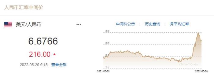 中新財經(jīng)5月26日電 中國人民銀行授權(quán)中國外匯交易中心公布,2022年5月26日銀行間外匯市場人民幣匯率中間價為:1美元對人民幣6.6766元。這較上一交易日下調(diào)216個基點(diǎn)。(完)