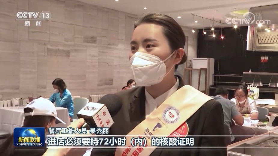 餐廳工作人員 吳秀麗:進店必須要持72小時(內(nèi))的核酸證明,隔餐(桌)坐,不是桌桌都可以坐。
