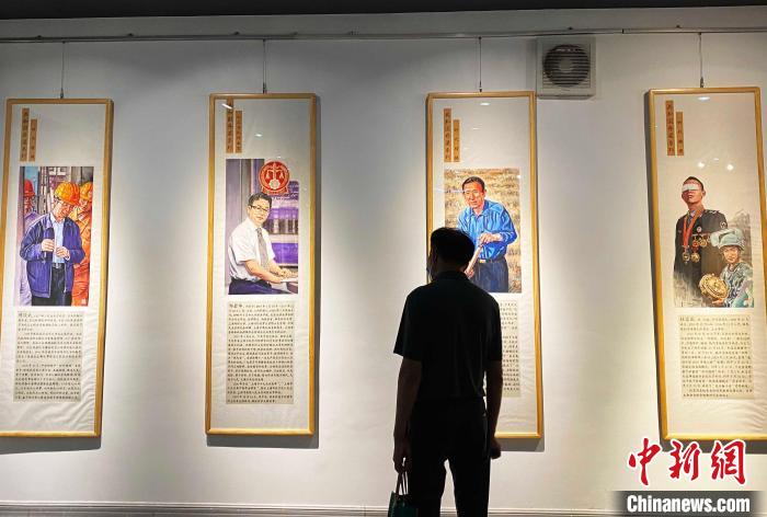 6月30日,“共和國脊梁”系列人物畫展在揚(yáng)州江都開展。 崔佳明 攝