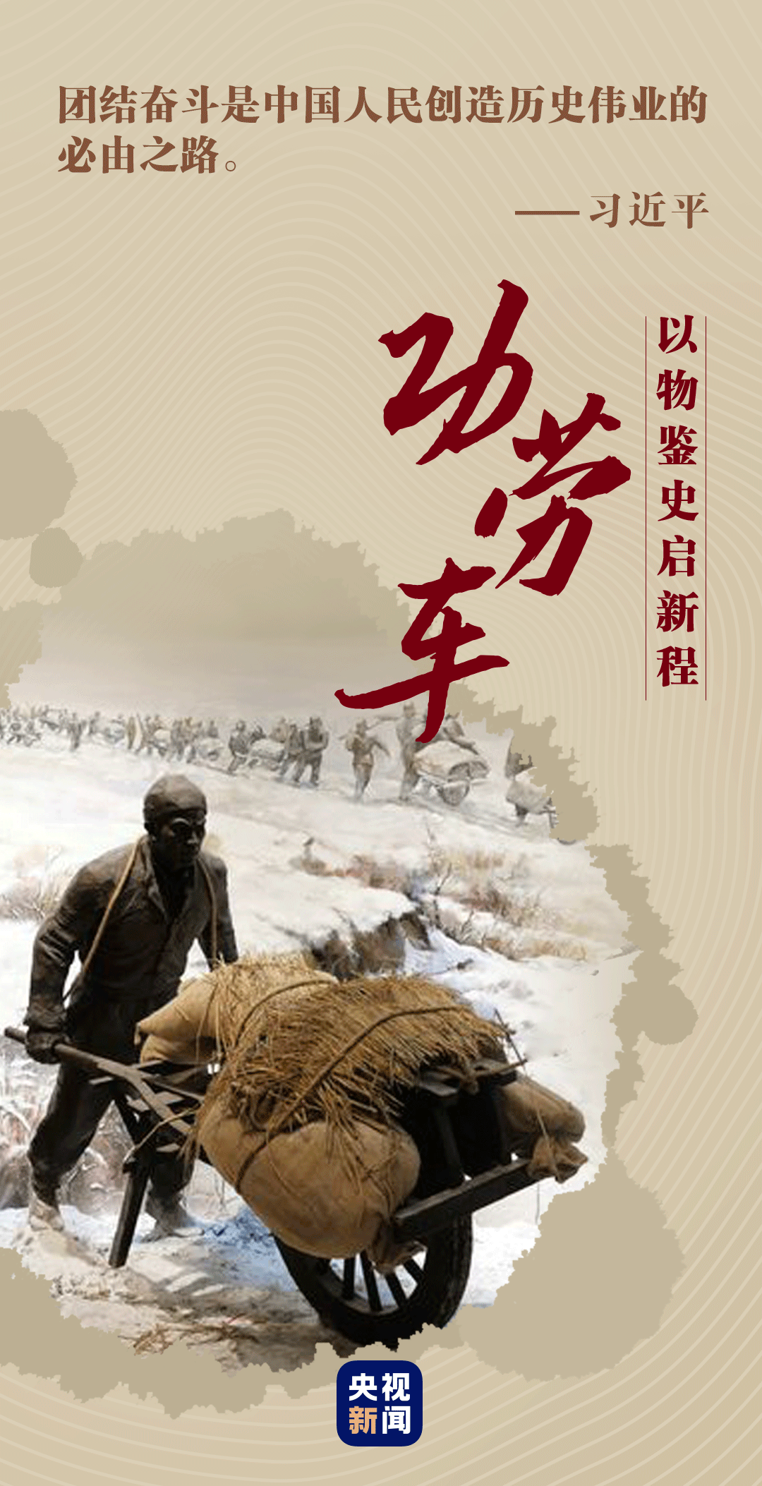 2017年12月13日,習(xí)近平總書(shū)記在參觀淮海戰(zhàn)役紀(jì)念館時(shí),深有感觸地說(shuō):“淮海戰(zhàn)役就是小推車(chē)推出來(lái)的勝利。我們要好好回報(bào)人民,讓人民過(guò)上幸福美好的生活?!?/p>