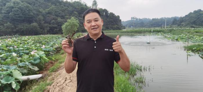 隨著鄉(xiāng)村振興全面推進(jìn),鄧述東又開始打造“一畝田脫貧”模式升級版——“深耕一畝田”。2021年年初,鄧述東團(tuán)隊與企業(yè)合作,在湘潭縣梅林橋現(xiàn)代農(nóng)業(yè)示范園流轉(zhuǎn)耕地1100余畝(包含部分魚塘、荷塘),引進(jìn)廣東一家澳洲青蝦繁育企業(yè),采取“蓮+蝦”“稻+蝦”、水塘“魚+蝦”等模式進(jìn)行試驗養(yǎng)殖,蝦苗成活率接近100%,成長速度達(dá)到預(yù)期目標(biāo)。