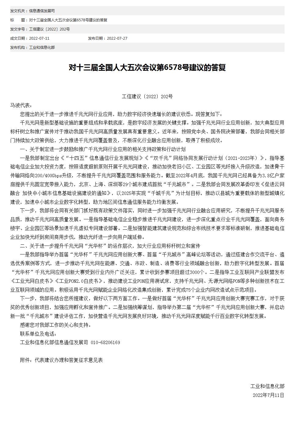 中新網(wǎng)7月27日電 工信部網(wǎng)站27日發(fā)布對十三屆全國人大五次會議第6578號建議的答復(fù)。工信部表示,下一步,將會同有關(guān)部門抓好既有政策文件落實,同時進(jìn)一步加強(qiáng)千兆光網(wǎng)行業(yè)融合應(yīng)用研究,不斷提升千兆光網(wǎng)服務(wù)品質(zhì),推動千兆光網(wǎng)高質(zhì)量發(fā)展。一是指導(dǎo)基礎(chǔ)電信企業(yè)穩(wěn)步推進(jìn)千兆光網(wǎng)建設(shè),進(jìn)一步深化重點行業(yè)千兆光網(wǎng)覆蓋,面向商務(wù)樓宇、企業(yè)園區(qū)等場景加速千兆虛擬專網(wǎng)建設(shè)部署。二是加強(qiáng)智能建筑建設(shè)規(guī)范和綜合布線技術(shù)要求等標(biāo)準(zhǔn)研制,推進(jìn)基礎(chǔ)電信企業(yè)加快光纖到房間商用步伐,推動光纖進(jìn)一步向用戶端延伸。(中新財經(jīng))