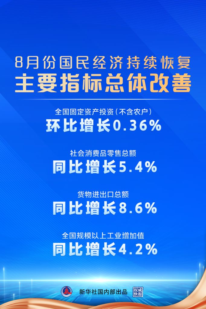 國家統(tǒng)計局:8月份國民經(jīng)濟持續(xù)恢復(fù),主要指標(biāo)總體改善