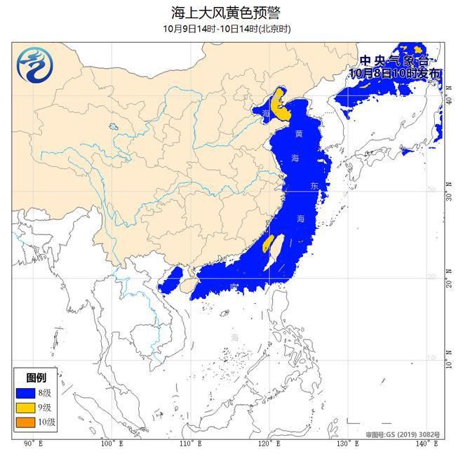 中央氣象臺10月8日10時繼續(xù)發(fā)布海上大風(fēng)黃色預(yù)警: