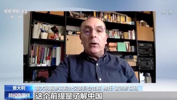 意大利前參議院外交委員會(huì)主席 維托·彼得羅切利:西方只有完全理解了這個(gè)特征才能真正理解中國(guó)和平發(fā)展給全世界帶來(lái)的機(jī)遇。這個(gè)前提是了解中國(guó),而不是與中國(guó)對(duì)抗。(央視新聞客戶端)