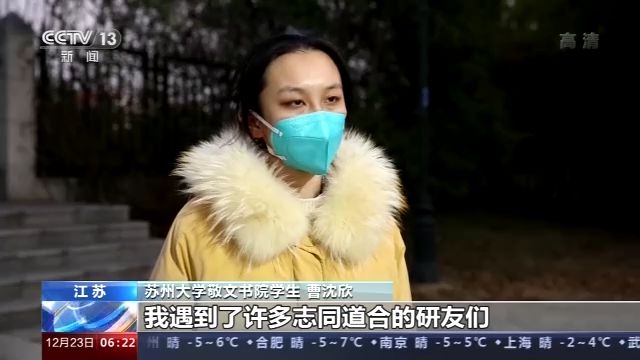 蘇州大學(xué)敬文書院學(xué)生 曹沈欣:我遇到了許多志同道合的研友們,我們相互幫助、相互鼓勵,遇到一些問題也可以去請教專業(yè)老師,來為我們及時解疑和答惑,學(xué)校跟書院也為我們提供了很多物資上的支持,讓我們堅定考研的決心,完成自己的目標(biāo)。