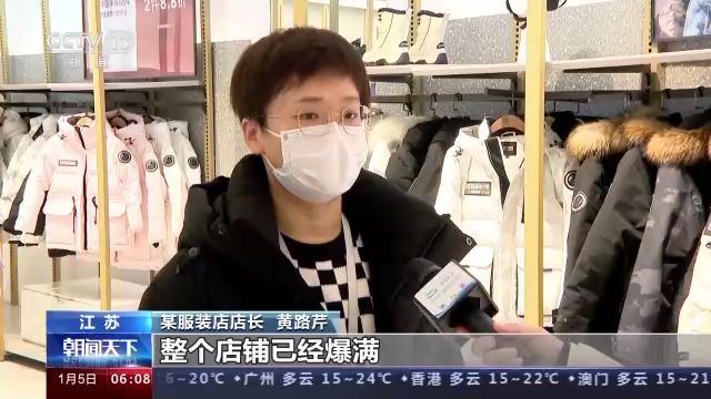 同樣,江蘇多地的商圈客流量也在不斷上漲,在江蘇蘇州工業(yè)園區(qū),前來采購新裝的消費(fèi)者,手里拎著大大小小的購物袋。由于客流量較大,一些商店采取了排隊(duì)限流措施。在蘇州市觀前街的各大商場里,商家推出了優(yōu)惠促銷活動,冬衣、取暖器等成為熱銷品。