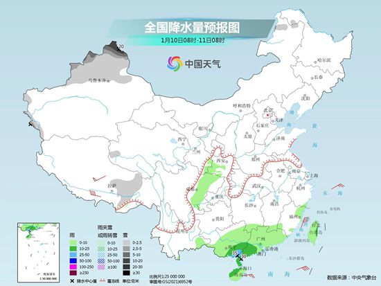 預計今明兩天,我國大部地區(qū)的降水依然較少,持續(xù)性強降雪依然集中在新疆北部等地,預計大部地區(qū)有小到中雪,塔城、阿勒泰等地部分地區(qū)或現(xiàn)暴雪,累計新增積雪深度可達5~10厘米,局地可達20~30厘米。此外,華南地區(qū)的降雨也逐漸增多,尤其是廣東中北部一帶將可能有范圍較大的大雨現(xiàn)身。