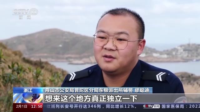 舟山市公安局普陀區(qū)分局東極派出所輔警 繆聰迪:因?yàn)槲蚁雽W(xué)會(huì)獨(dú)立,我之前為什么不在(舟山)本島應(yīng)聘輔警,因?yàn)槲沂菑男“謰尪紝?duì)我挺好的,大學(xué)以后,我爸媽經(jīng)常一個(gè)禮拜,一兩個(gè)禮拜來(lái)學(xué)??次乙淮危覐膩?lái)沒(méi)有獨(dú)立過(guò),想來(lái)這個(gè)地方真正獨(dú)立一下。