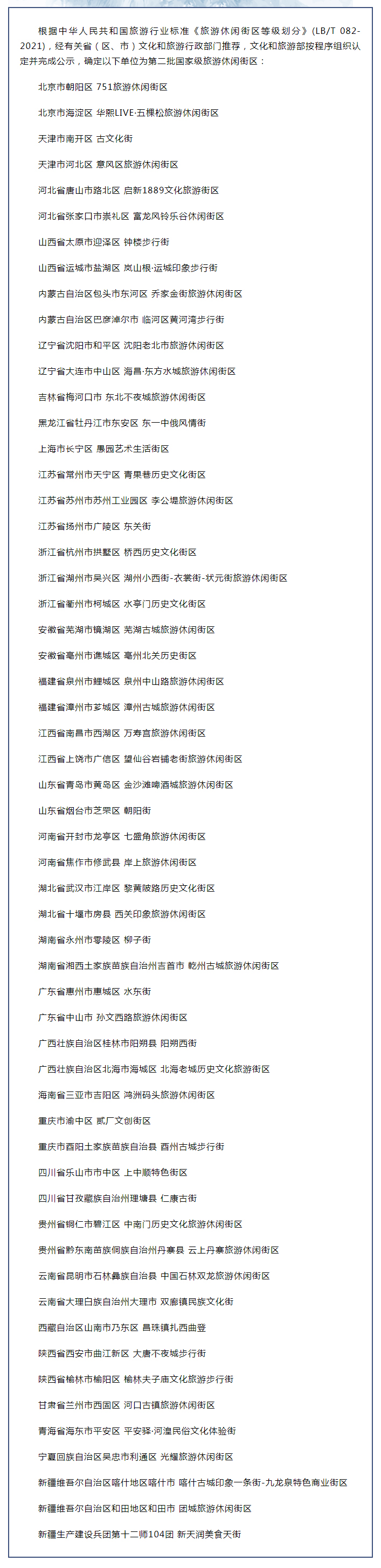 文化和旅游部確定第二批國家級旅游休閑街區(qū)