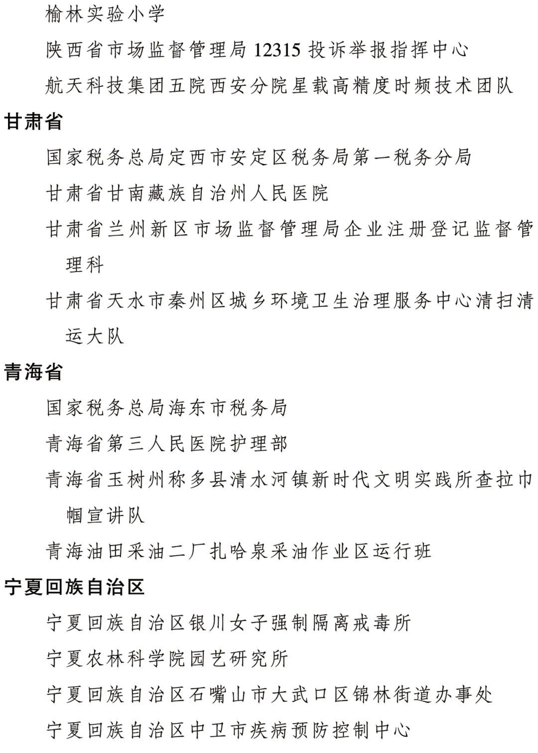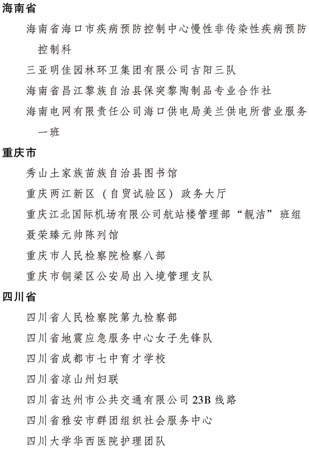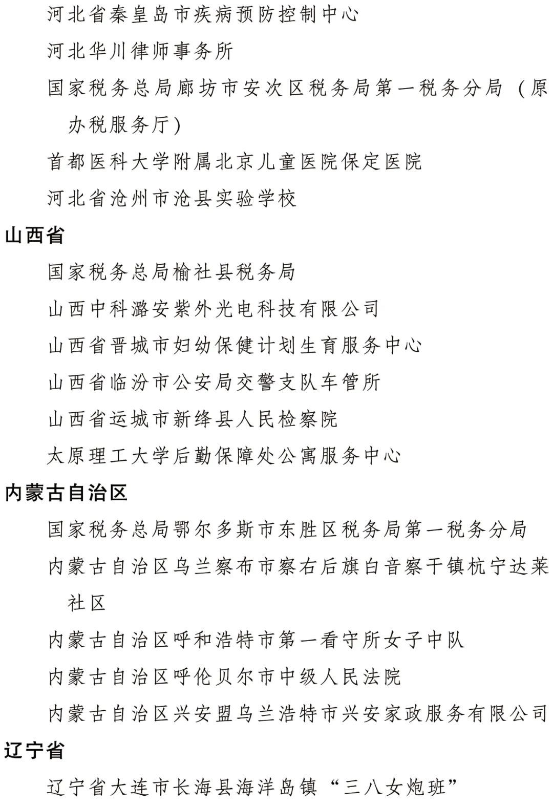 全國三八紅旗集體名單
