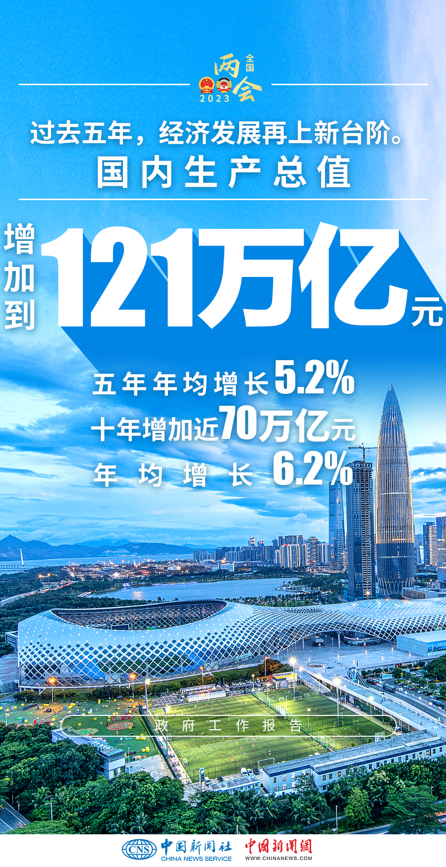——國(guó)內(nèi)生產(chǎn)總值增加到121萬億元,五年年均增長(zhǎng)5.2%