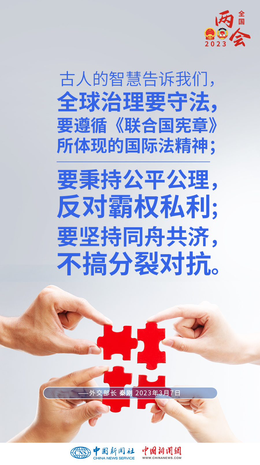 秦剛:古人的智慧告訴我們,全球治理要守法,要遵循《聯(lián)合國憲章》所體現(xiàn)的國際法精神;要秉持公平公理,反對霸權(quán)私利;要堅(jiān)持同舟共濟(jì),不搞分裂對抗。