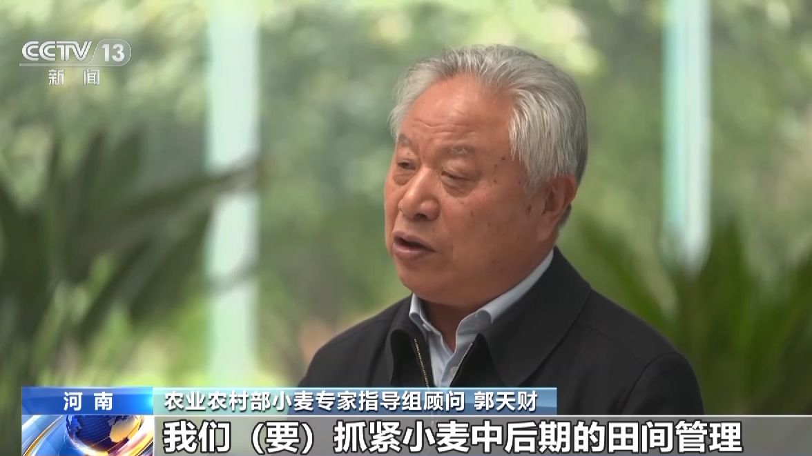農(nóng)業(yè)農(nóng)村部小麥專家指導(dǎo)組顧問 郭天財:我們要抓緊小麥中后期的田間管理,一個措施一個措施地把它落實落地,一個環(huán)節(jié)一個環(huán)節(jié),我們把它抓緊抓好,來鞏固和發(fā)展當(dāng)前苗情持續(xù)向好的態(tài)勢,今年小麥豐收還是很有希望的。