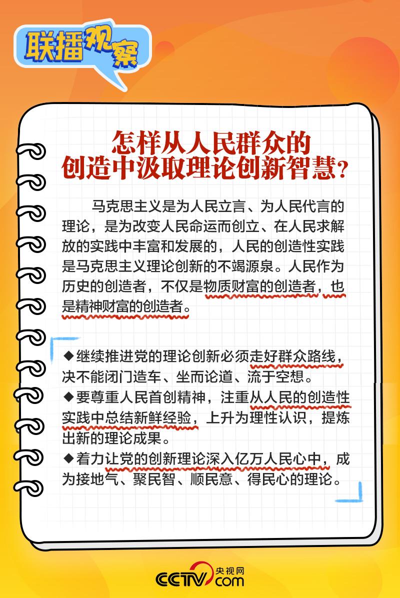 如何開辟馬克思主義中國(guó)化時(shí)代化新境界?理論創(chuàng)新的基礎(chǔ)和前提是什么?怎樣從人民群眾的創(chuàng)造中汲取理論創(chuàng)新智慧?央視網(wǎng)《聯(lián)播+》梳理總書記主持學(xué)習(xí)時(shí)的講話,與您一起學(xué)習(xí)。