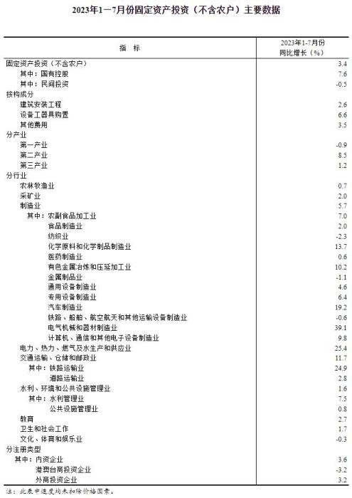 國家統(tǒng)計局:1—7月份全國固定資產(chǎn)投資增長3.4%