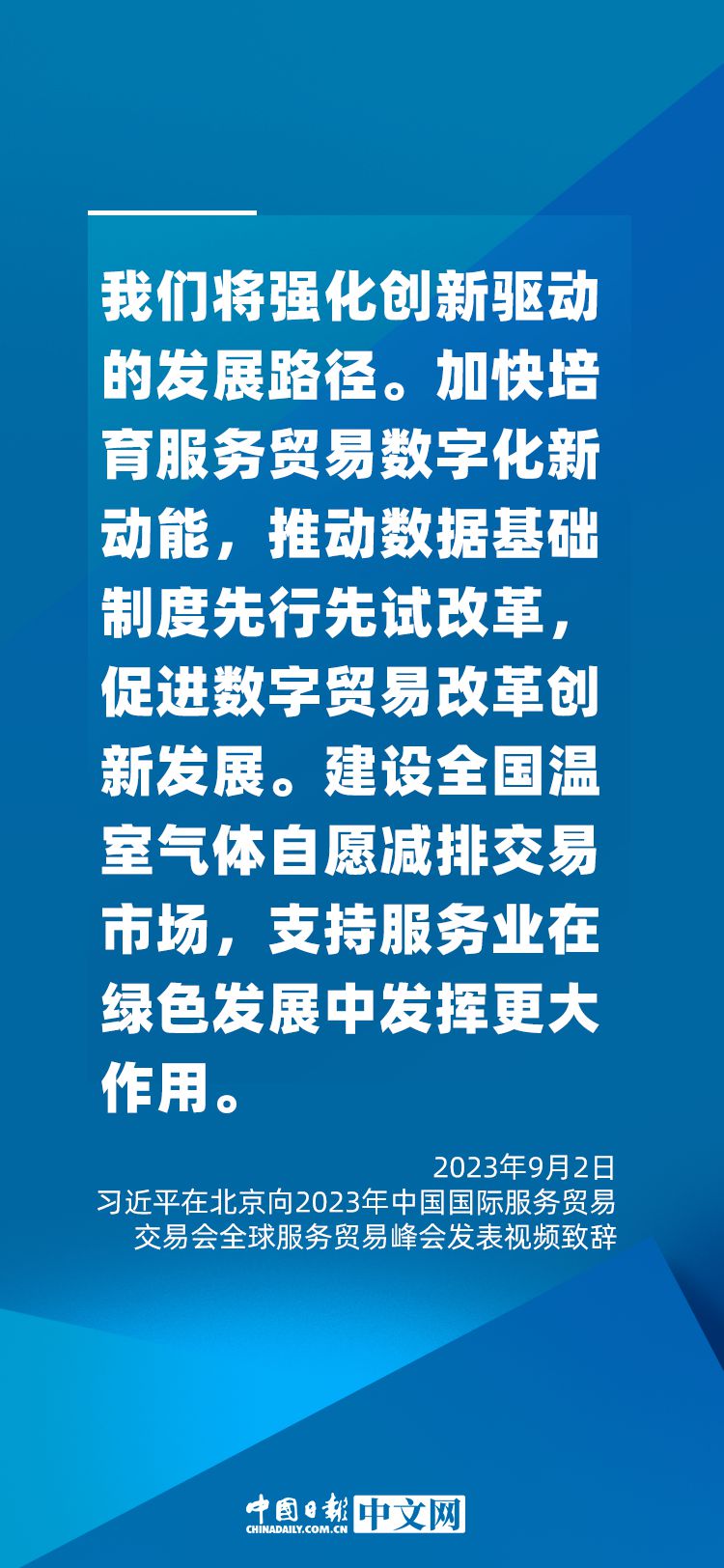 9月2日上午,國家主席習(xí)近平在北京向2023年中國國際服務(wù)貿(mào)易交易會全球服務(wù)貿(mào)易峰會發(fā)表視頻致辭。