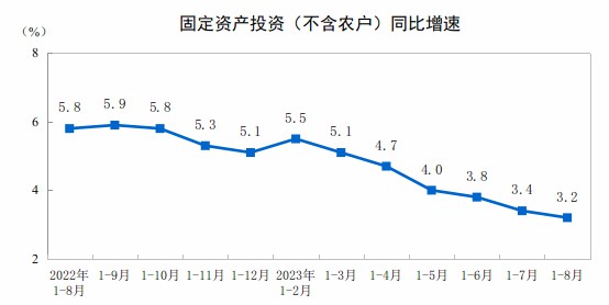 國家統(tǒng)計局:2023年1—8月份全國固定資產投資增長3.2%