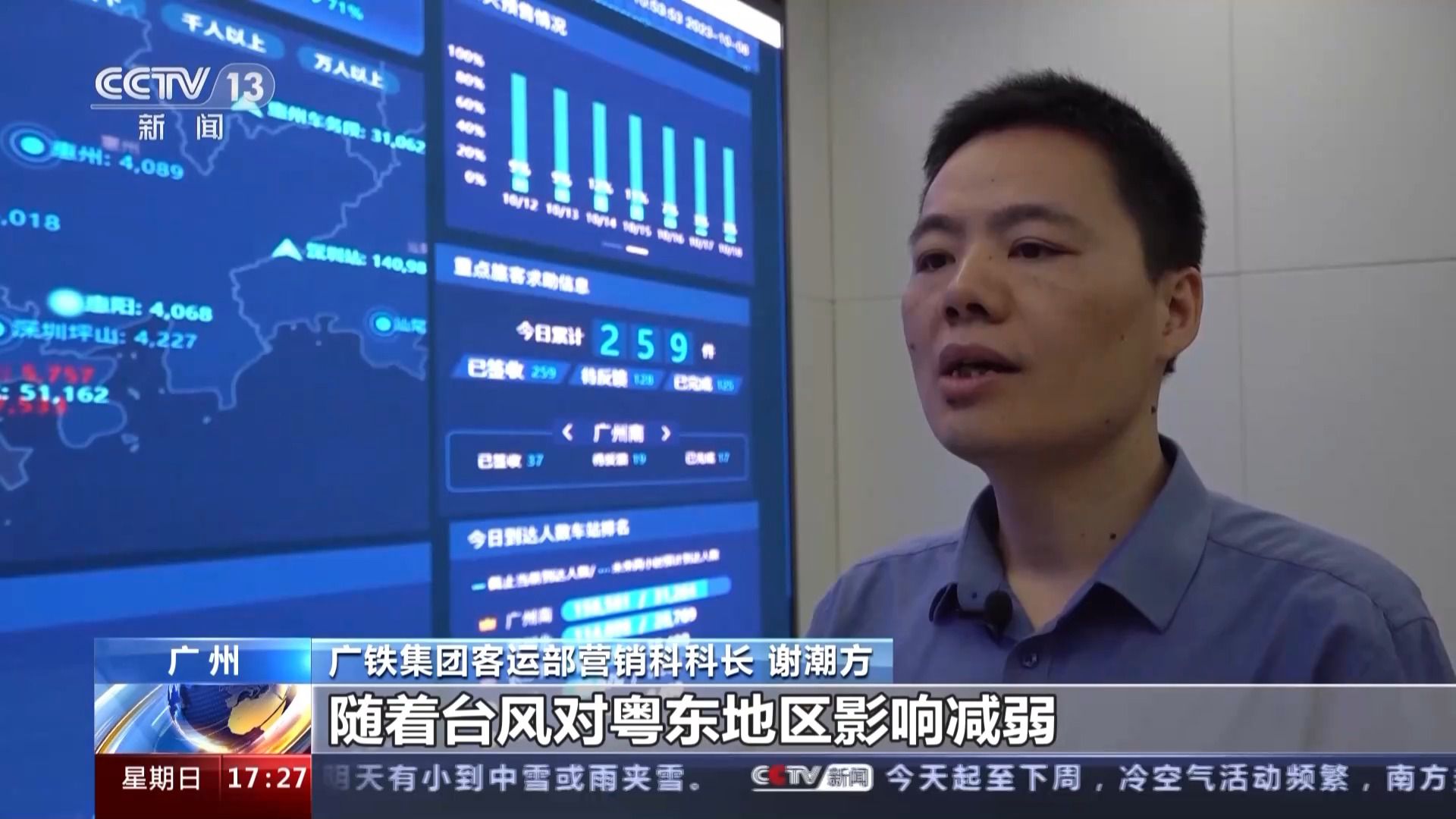 廣鐵集團(tuán)客運(yùn)部營(yíng)銷科科長(zhǎng)謝潮方:隨著臺(tái)風(fēng)對(duì)粵東地區(qū)影響減弱,今天,杭深、廣汕等線路列車運(yùn)行秩序恢復(fù)正常。中秋國(guó)慶假期的后幾天,仍是返程客流高峰,我們將加強(qiáng)線路檢查,確保運(yùn)輸安全。