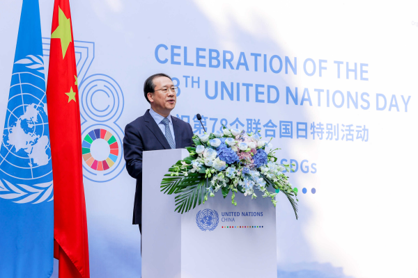 2023年10月23日,外交部副部長馬朝旭出席聯(lián)合國發(fā)展系統(tǒng)駐華協(xié)調(diào)員舉辦的“聯(lián)合國日”慶?;顒硬l(fā)表致辭。