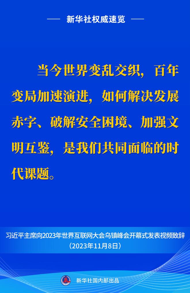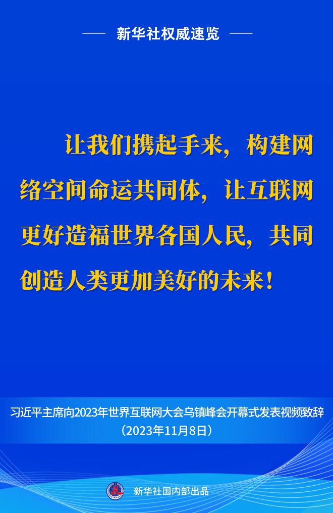 新華社權(quán)威速覽丨習(xí)近平主席向2023年世界互聯(lián)網(wǎng)大會(huì)烏鎮(zhèn)峰會(huì)開(kāi)幕式視頻致辭金句