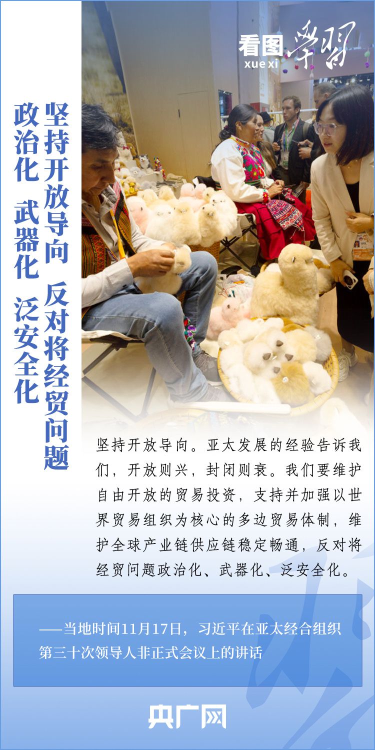 當(dāng)?shù)貢r(shí)間11月17日上午,亞太經(jīng)合組織第三十次領(lǐng)導(dǎo)人非正式會(huì)議在美國舊金山舉行。國家主席習(xí)近平出席會(huì)議并發(fā)表題為《堅(jiān)守初心 團(tuán)結(jié)合作 攜手共促亞太高質(zhì)量增長》的重要講話。習(xí)主席在講話中全面闡述了中國對(duì)深化亞太合作、促進(jìn)地區(qū)和世界經(jīng)濟(jì)增長的重要主張,以“四個(gè)堅(jiān)持”提出多項(xiàng)務(wù)實(shí)舉措,希望同各方一道努力,共同打造亞太下一個(gè)“黃金三十年”。一起來學(xué)習(xí)!