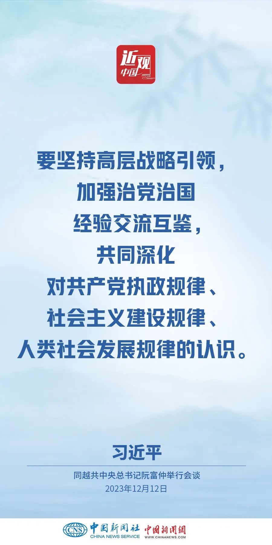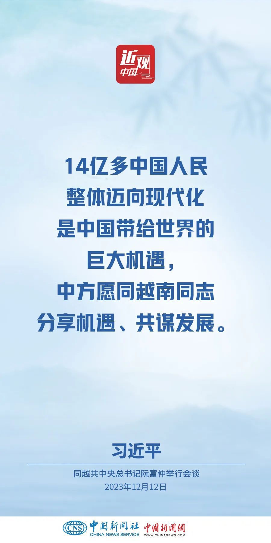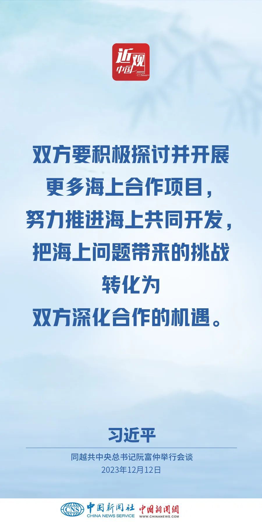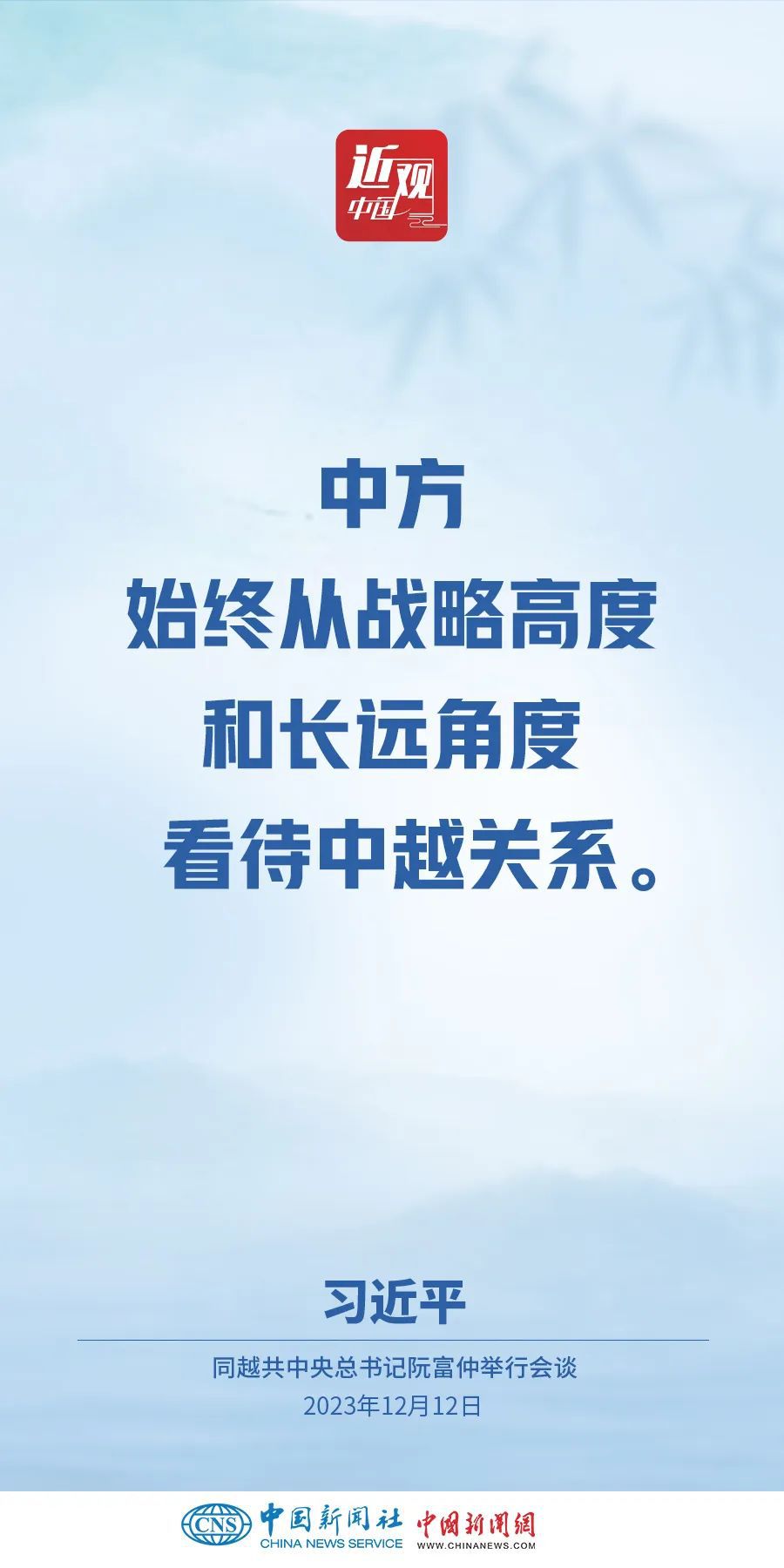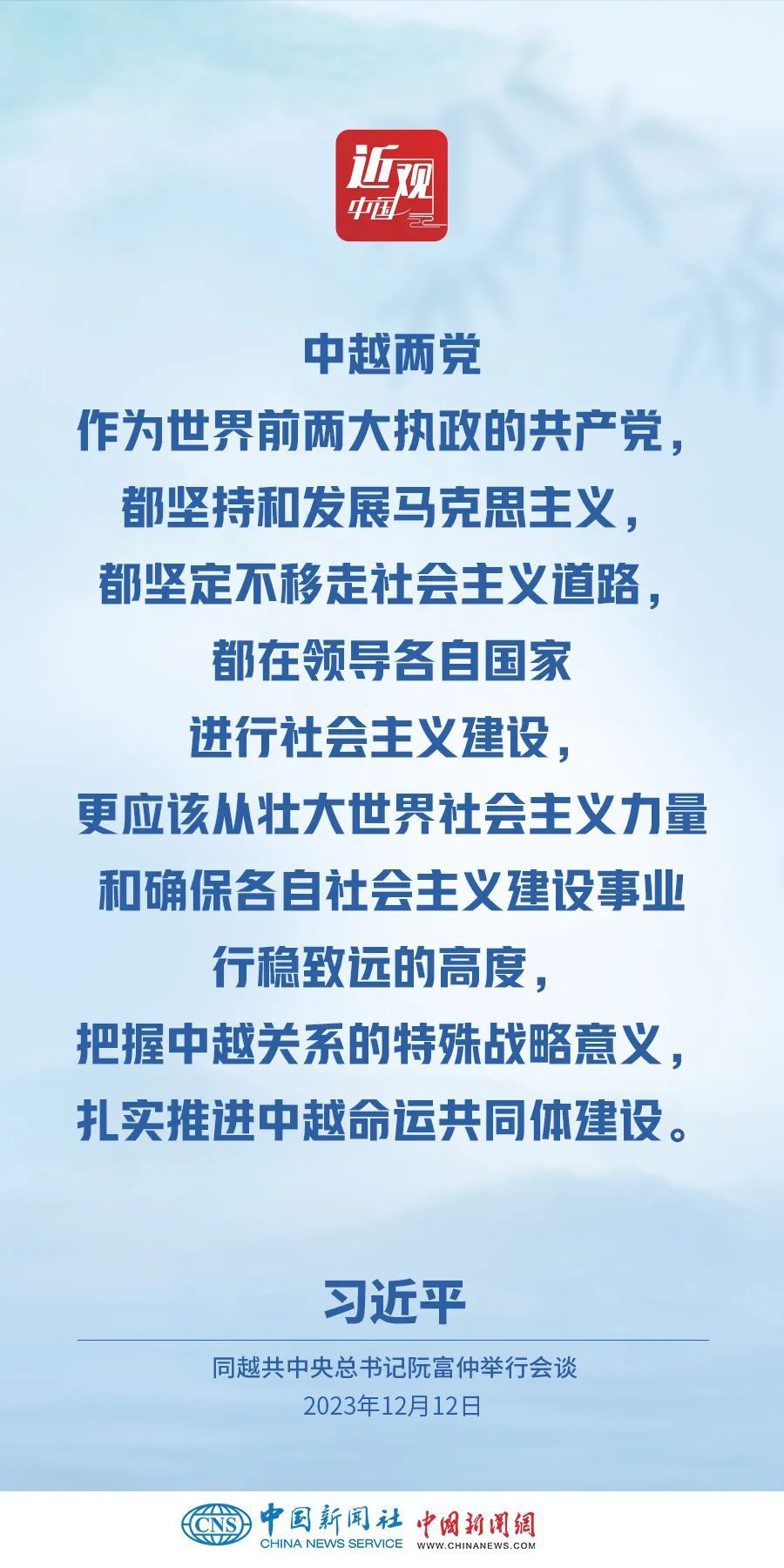 當?shù)貢r間12月12日下午,剛剛抵達河內(nèi)的中共中央總書記、國家主席習(xí)近平在越共中央駐地同越共中央總書記阮富仲舉行會談。雙方宣布中越兩黨兩國關(guān)系新定位,在深化中越全面戰(zhàn)略合作伙伴關(guān)系基礎(chǔ)上,攜手構(gòu)建具有戰(zhàn)略意義的中越命運共同體。習(xí)近平指出——
