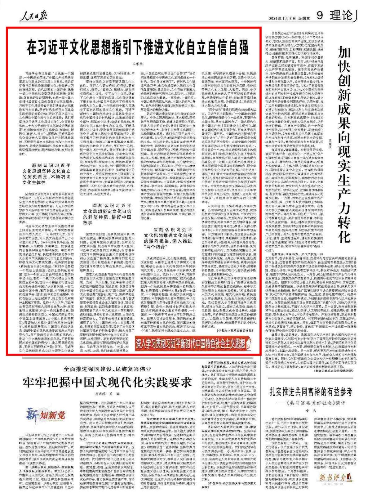 人民日?qǐng)?bào)刊發(fā)王蒙徽署名文章:在習(xí)近平文化思想指引下推進(jìn)文化自立自信自強(qiáng)