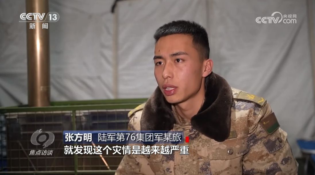 張方明:“一直走到大河家鎮(zhèn),發(fā)現(xiàn)災(zāi)情越來越嚴(yán)重,就打電話說我回來了,我爸第一時(shí)間跟我說:“你先不要回去了,這邊搬物資啥的,鄉(xiāng)政府都比較忙,你是當(dāng)兵的,你要來這邊幫忙,你要肩負(fù)起這份責(zé)任。””