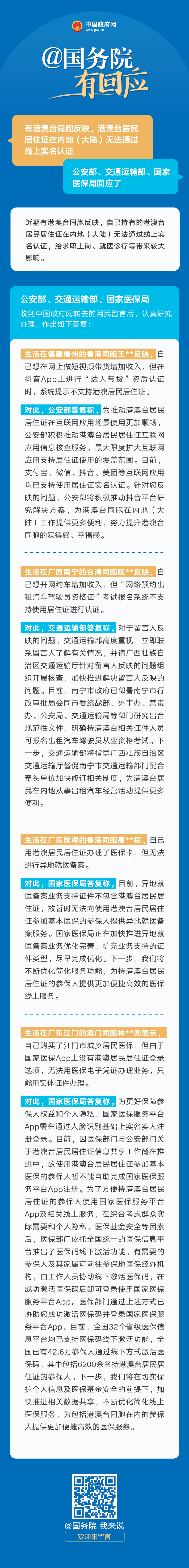 公安部、交通運(yùn)輸部、國家醫(yī)保局答網(wǎng)民關(guān)于“加快推進(jìn)港澳臺(tái)居民居住證線上實(shí)名認(rèn)證”的留言